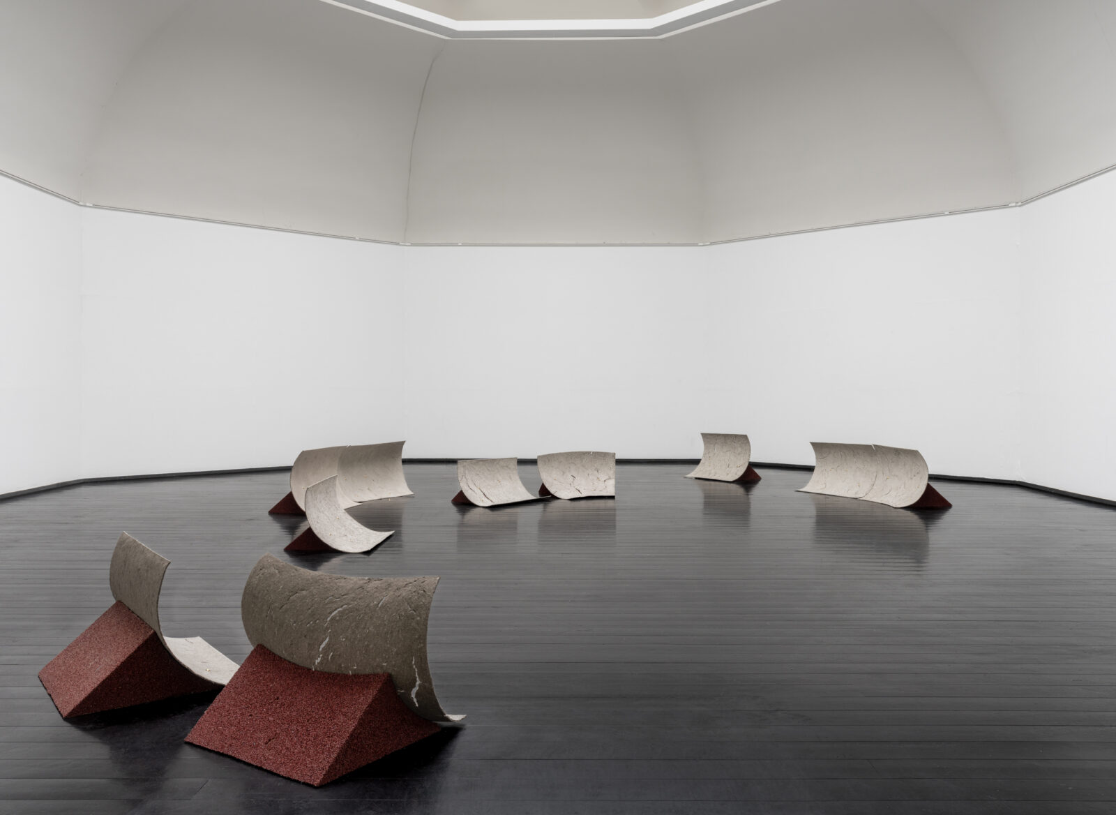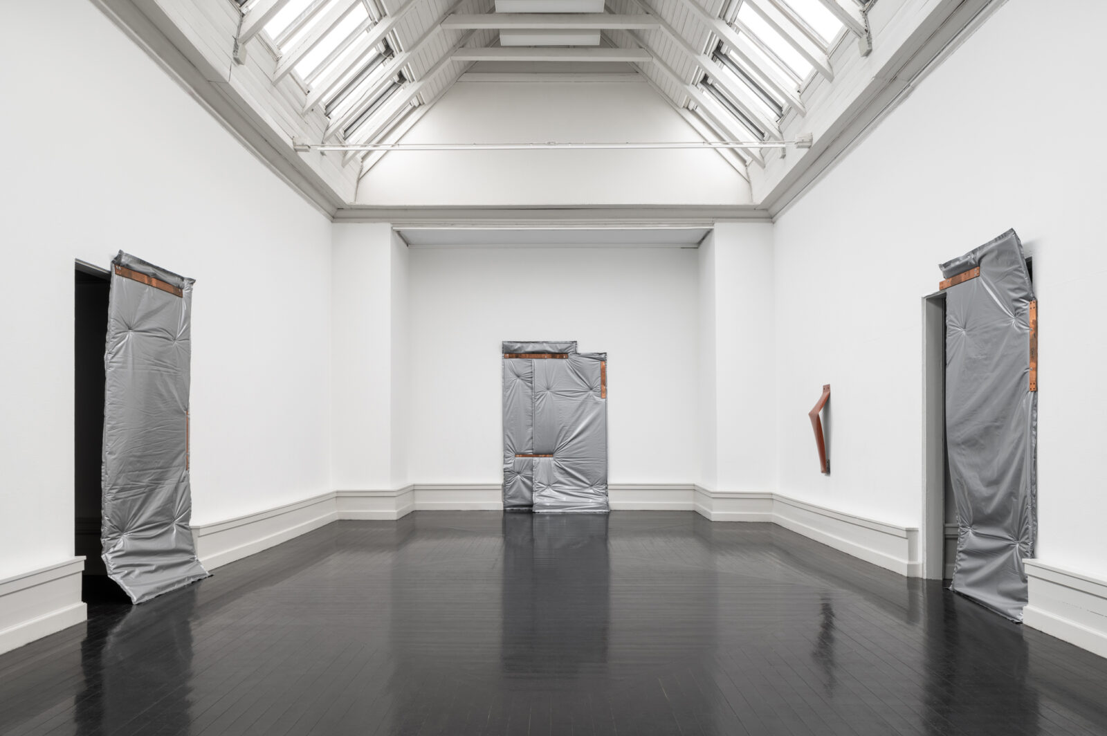 Marie Lund’s artistic practice arrives from a contemplation on the interdependencies between architecture, space, objects, and bodies. Her sculptural works hold references to existing, functional objects, which she releases from their original use and transforms through tensile material processes into abstract sculptural structures. Often situated in relation to liminal positions, in resistance to sculpture as autonomous object, they activate their environment, encompassing encounters between body and space, and exchange with artworks by other artists. In turning to ideas of hosting and openness, space is given rather than merely occupied. Accordingly, Lund’s sculptures resonate as social as well as spatial frameworks, fostering mutual forms of dependency within exhibition formats.