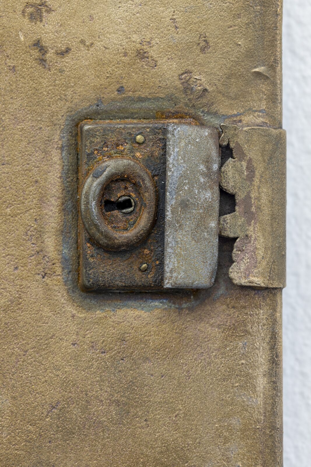 The five books were five diaries. Prior to being blocks of bronze displayed on the wall they were bundles of paper. All pages burned in the casting process and their words with them, what remains is the long-lived metal filling out the five holes created by the absent books. While the writing is now thoroughly deleted, the locks made it through the fire. Doing their job so to speak. It is difficult to decide if the secrets are now more gone than kept.