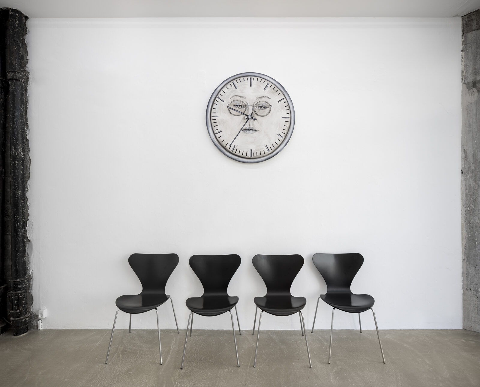 When she thus combines literal messages with a highly expressive visual language Nis-Hansen borrows from late-capitalist commercial style and entertainment industry. Illustratively, a title such as Impatient Girl on a meta level reflects the fast communication that is essential to consumer society. Moreover, working site specifically, Nis-Hansen has changed palace enterprise into a waiting room. Rather than inviting long- term rest and immersion, this space encourages peoples’ passing through. A waiting room thus echoes a notion of “non-place”. Much has changed since 1995 when French anthropologist Marc Augé coined this term, yet I think that airports, waiting rooms and, indeed, art galleries share in their function as containers for interpersonal interaction and the fast transference of significant messages.