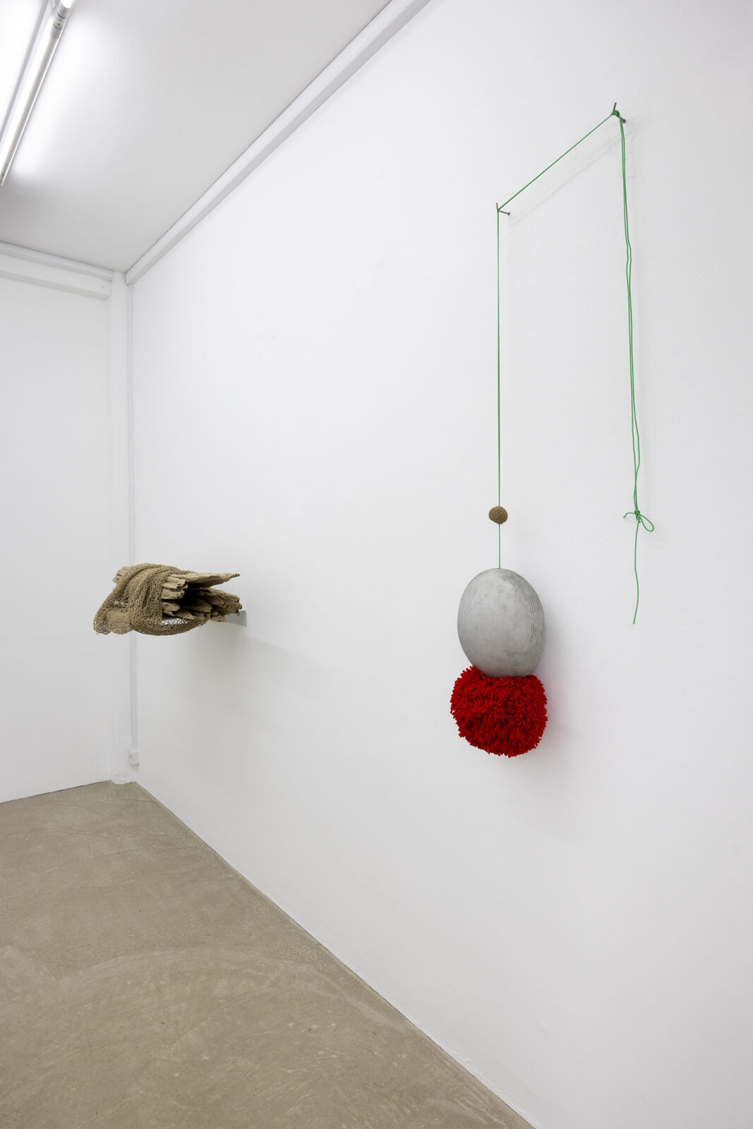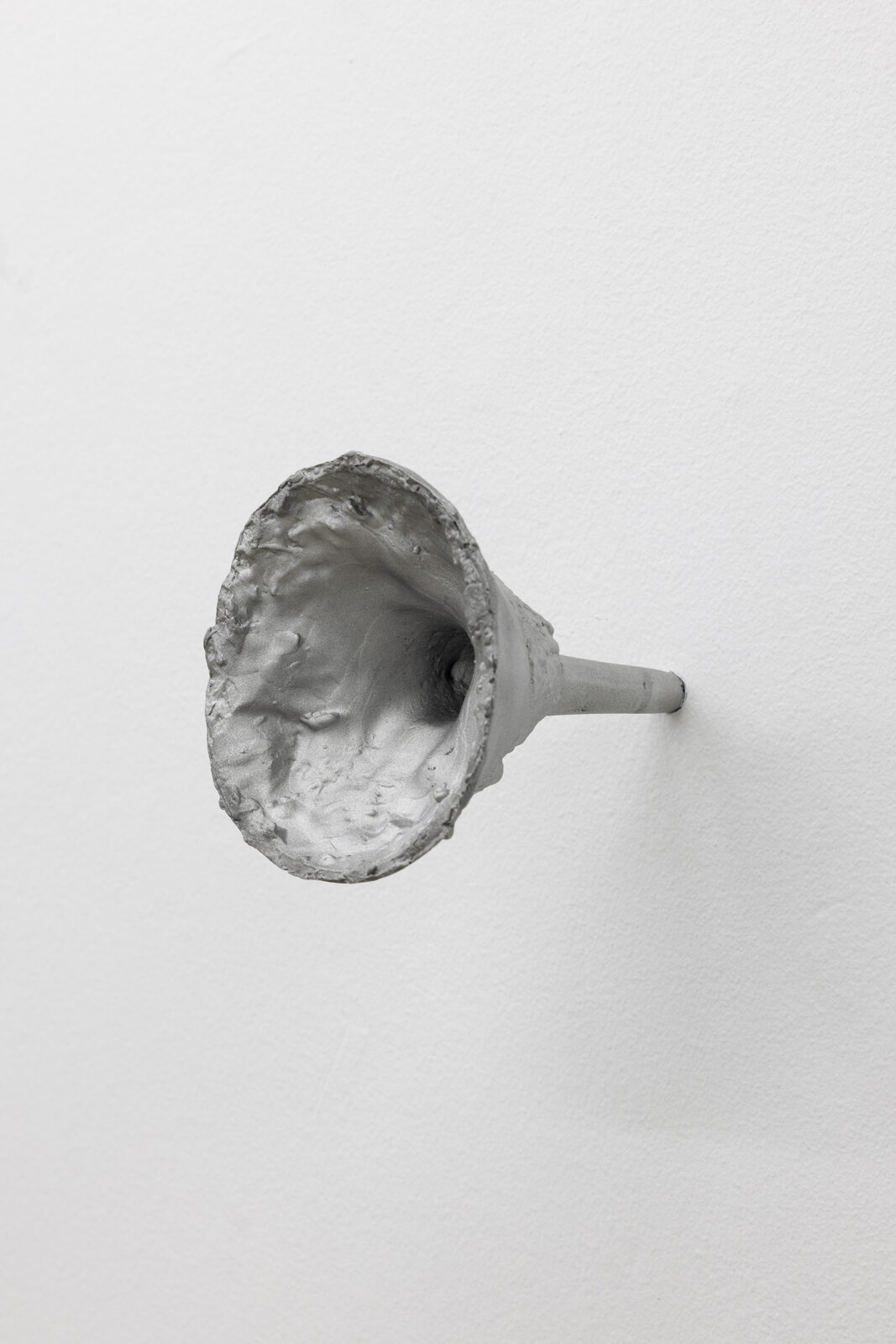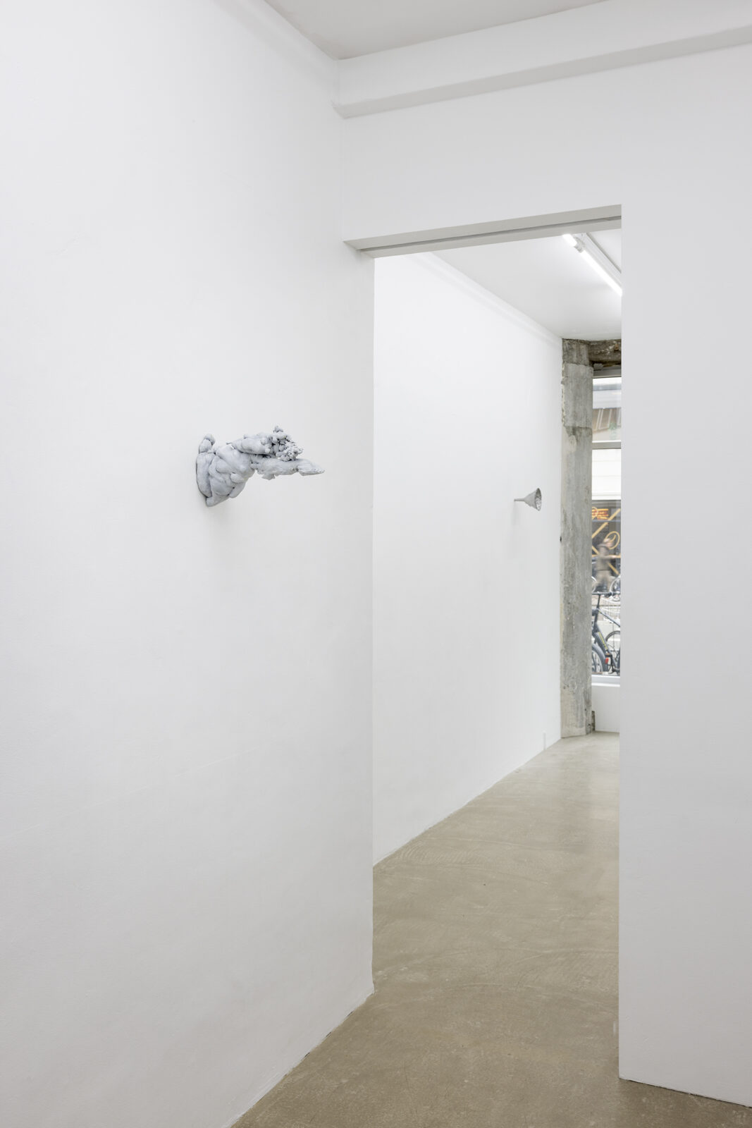 Wax behind bars. Such solid clouds wanting to evaporate or melt down the walls to become a chunky pool of something rain-colored, but they’re held in place. A still life of tools rather than precious ripeness in baroque goblets, and the tools, too, are obstructed. When something is caged, it is either cared for or constrained, maybe both. Balconies might be romance or poetry when they’re all ivy-clad patina and sunset booze, and they might be concrete when they’re all solid and function: elevating a substance from the ground, framing something very elementary. Offering rest or display to these accumulations of allegedly normal matter that also appears indifferent to pedestalization altogether. Beauty is not rejected; it just isn’t pursued.